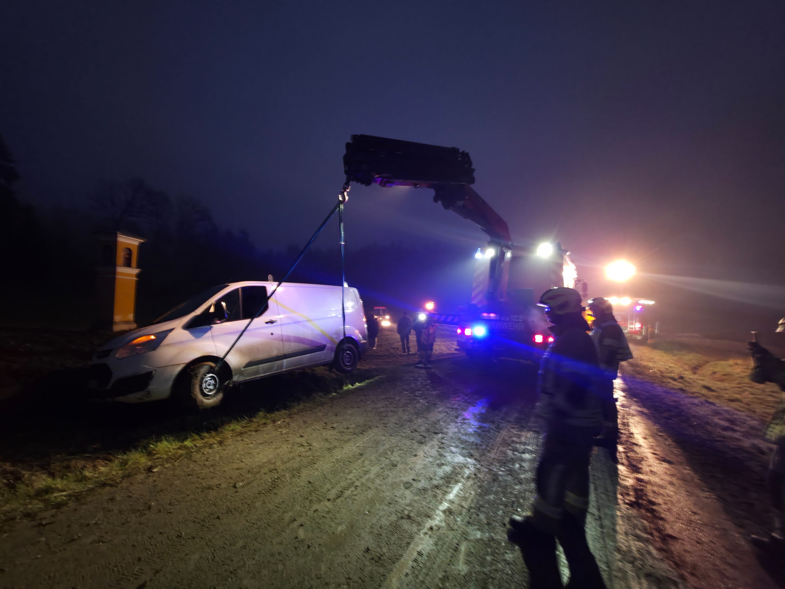 Am Freitag, dem 19. Dezember 2025, wurde die FF Schildbach gemeinsam mit der FF Mitterdombach um 6:20 Uhr zu einer Fahrzeugbergung nach Totterfeld gerufen. Ein Fahrzeug war von der Straße gerutscht und im Graben gelandet.