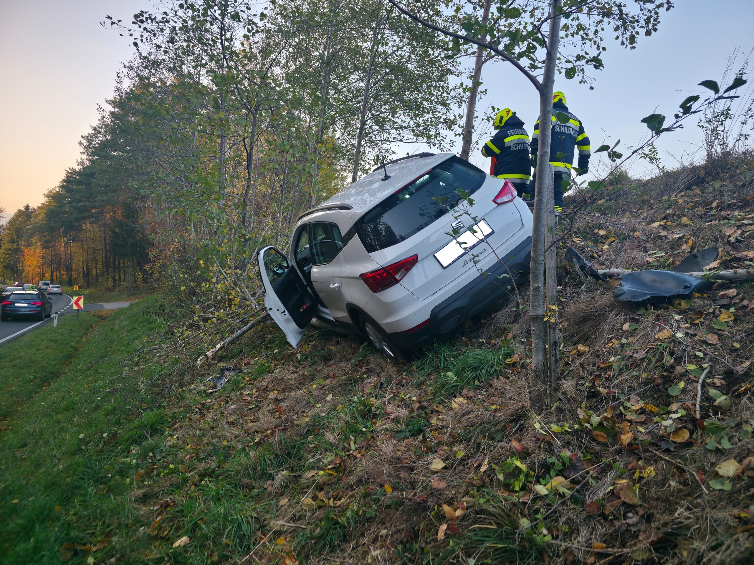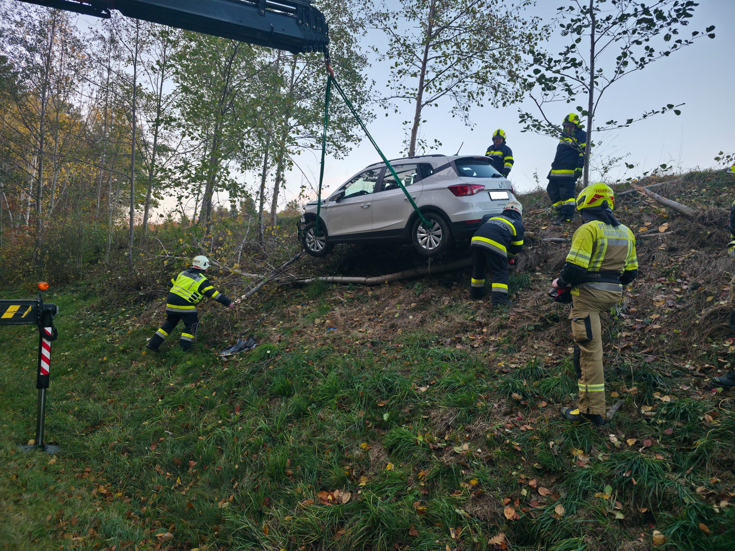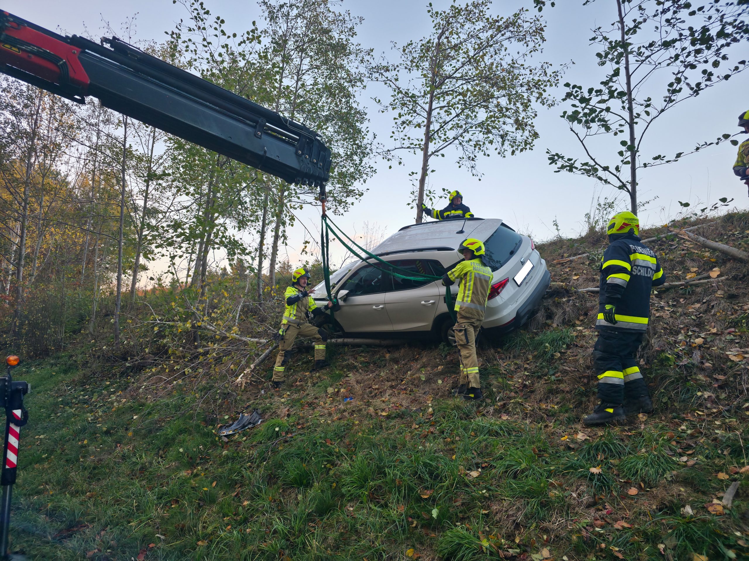 Am Donnerstag, dem 6. November 2025, wurde die FF Schildbach gemeinsam mit der FF Mitterdombach um 15:40 Uhr zu einer Fahrzeugbergung auf L406 nahe Flattendorf gerufen. Ein Auto war von der Straße abgekommen und nach etwa 50 Metern zwischen Bäumen zum Stehen gekommen.