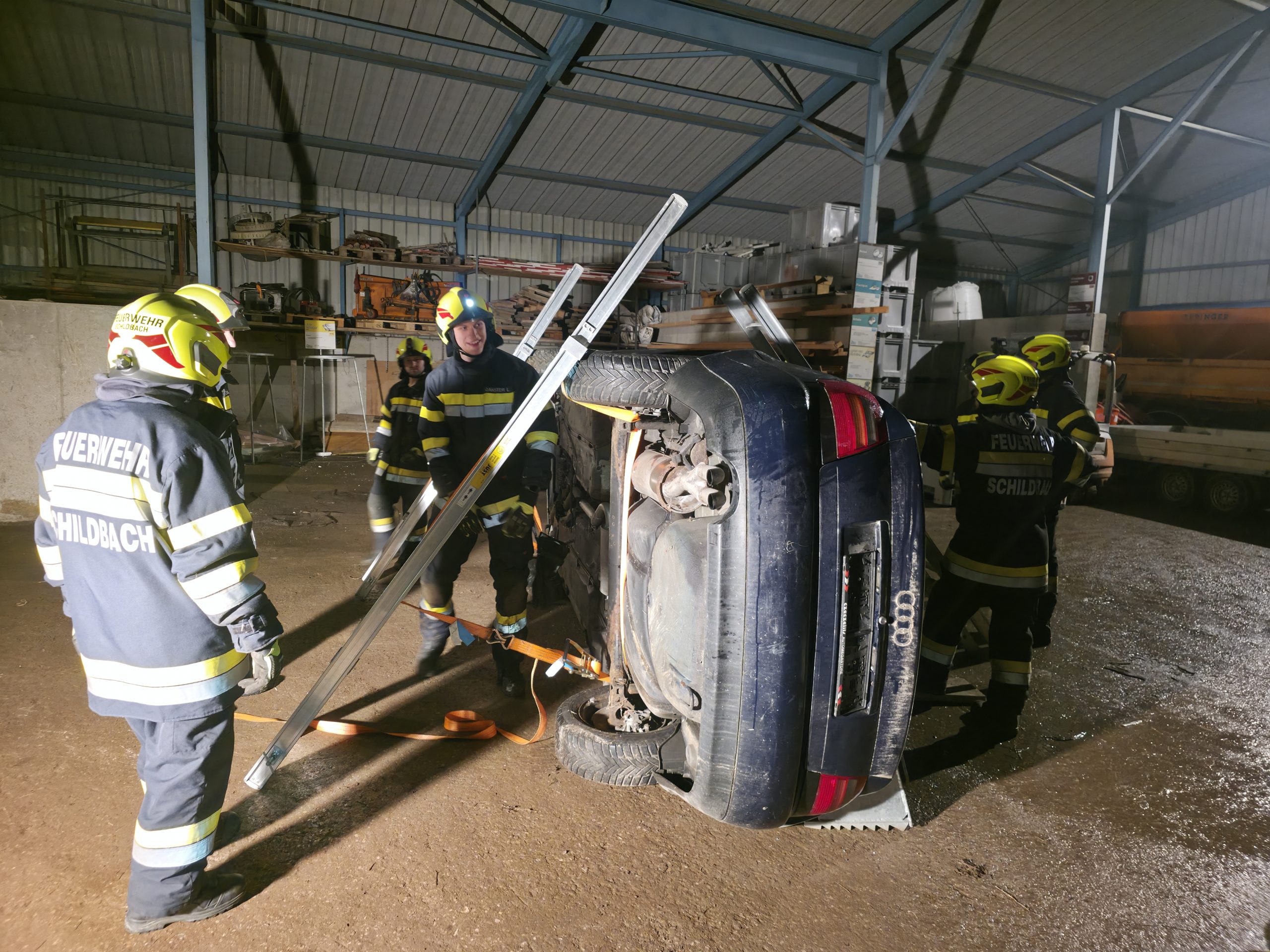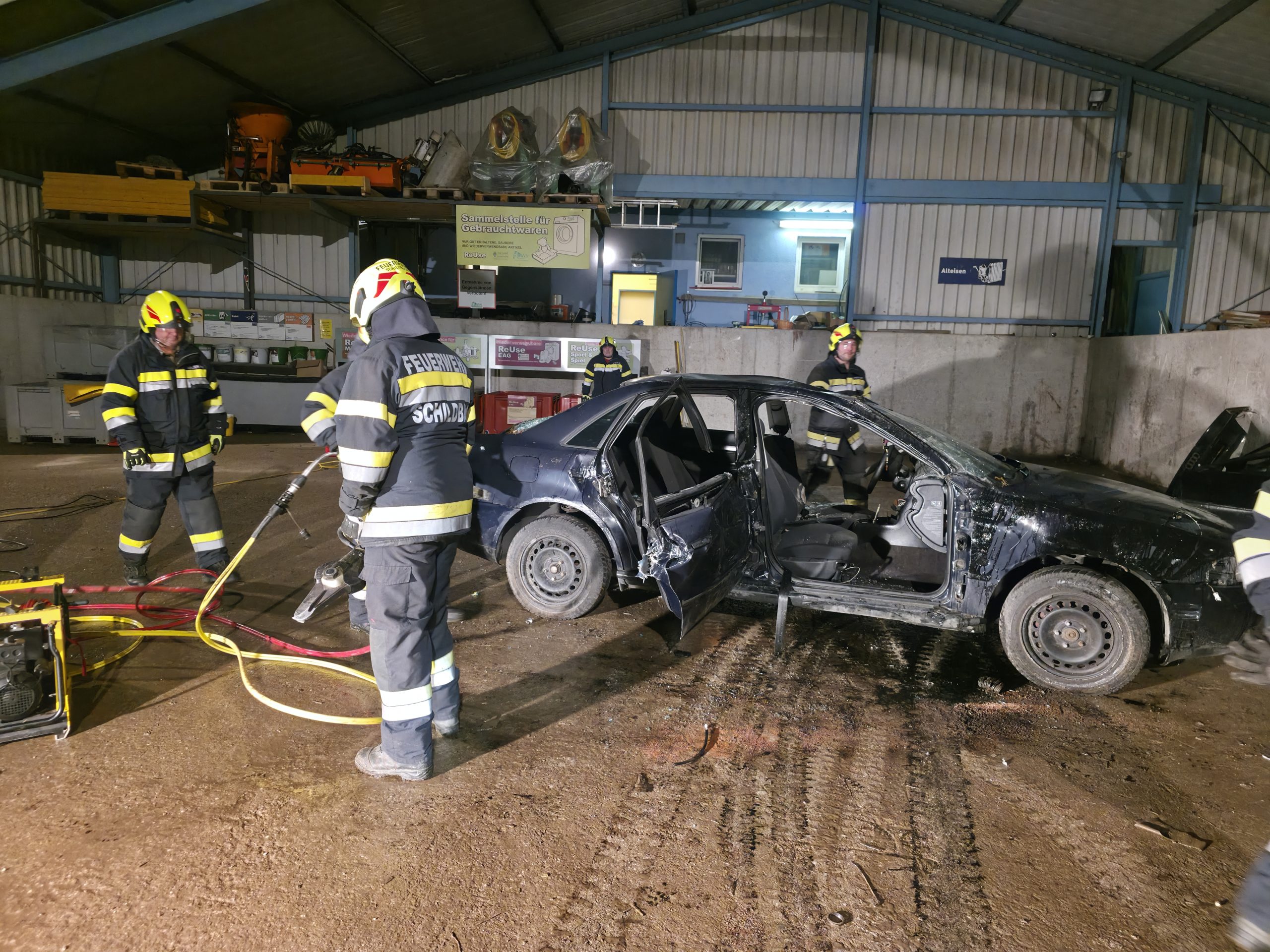Am Montag, dem 9. Februar 2026, wurde eine Gesamtübung zum Thema Fahrzeugbergung und Rettungssatz mit Schere und Spreizer durchgeführt.